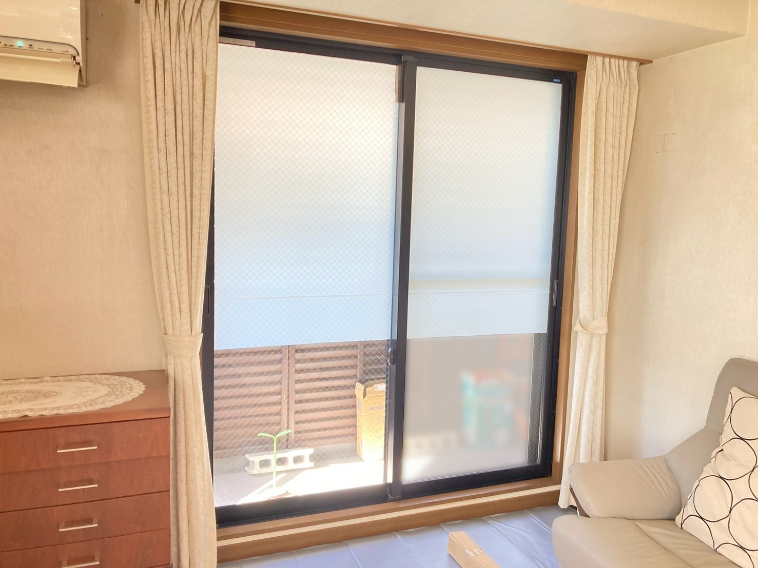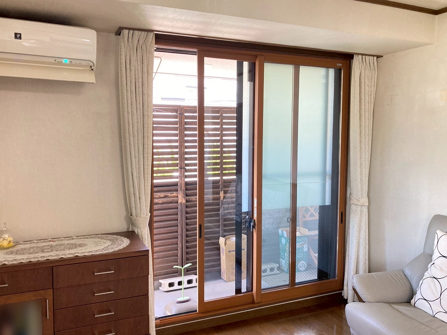 お問い合わせから施工まで少し期間が空き、工事日は7月半ばの非常に暑い日となりました。設置が完了した窓から順にご確認いただいたところ、